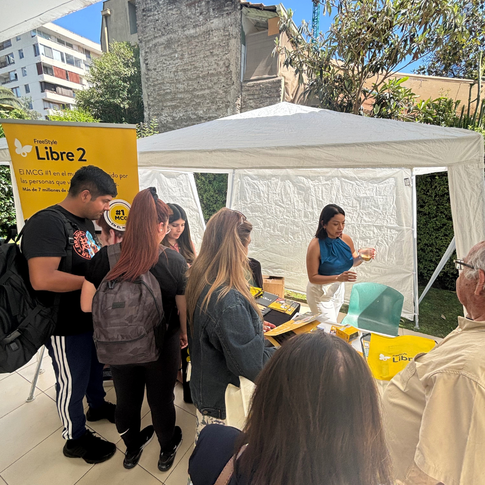 Durante la jornada —tanto en la mañana como en la tarde— los asistentes recorrieron stands con tecnología, insumos, educación y sorpresas, pudiendo resolver dudas, conocer novedades y descubrir productos que hoy están transformando el manejo de la diabetes en Chile.